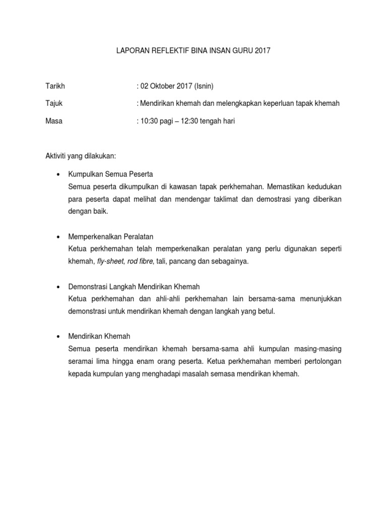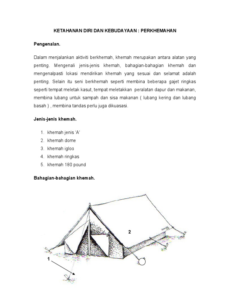 100 100 found this document useful Mark this document as useful. Ini tips dan peraturan paling penting apabila korang selesai berkhemah. Tempatkan hujung tiang itu di lubang sisi khemah.