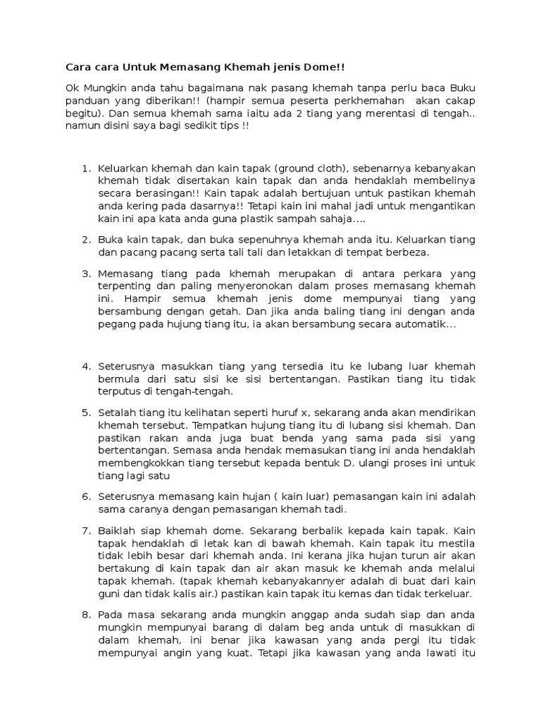 Cara Cara Untuk Memasang Khemah Jenis Dome Pdf